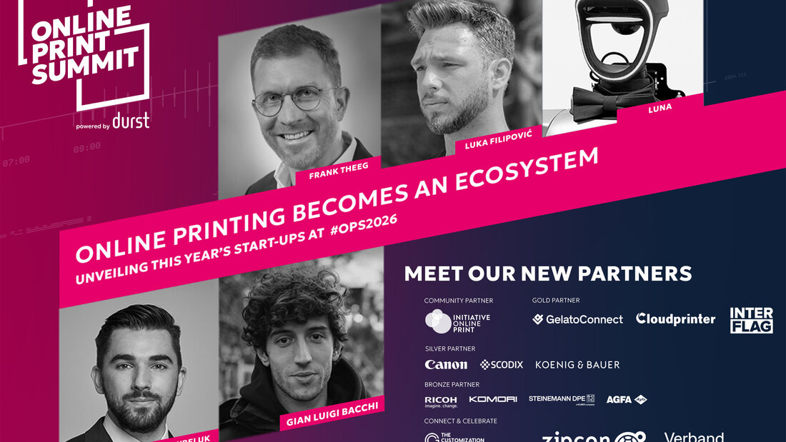 Aber auch auf der Partnerseite wächst der Online Print Summit 2026 weiter. Als neue Gold-Partner engagieren sich Gelato Connect, Cloudprinter und Interflag und bringen damit zusätzliche internationale Plattform- und Produktionskompetenz in das Summit-Umfeld ein. Als Silber-Partner unterstützen Canon, Scodix und Koenig & Bauer den OPS mit technologischer Expertise entlang der gesamten Wertschöpfungskette – von Digitaldruck über Veredelung bis Maschinenbau. Ergänzt wird das Partnernetzwerk durch die neuen Bronze-Partner Ricoh, Komori, Steinemann und Agfa. Damit spiegelt der OPS 2026 einmal mehr die gesamte Bandbreite der Branche wider – von globalen Plattformanbietern bis zu etablierten Technologieherstellern.