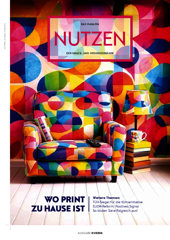 NUTZEN ist das gemeinsame Magazin der Verbände Druck und Medien mit vielen interessanten Beiträgen, Daten und Fakten rund um das Themenspektrum „Print“. Es versteht sich als Informationsquelle für alle, die von Print leben und für die, die wir gemeinsam von Print überzeugen wollen.